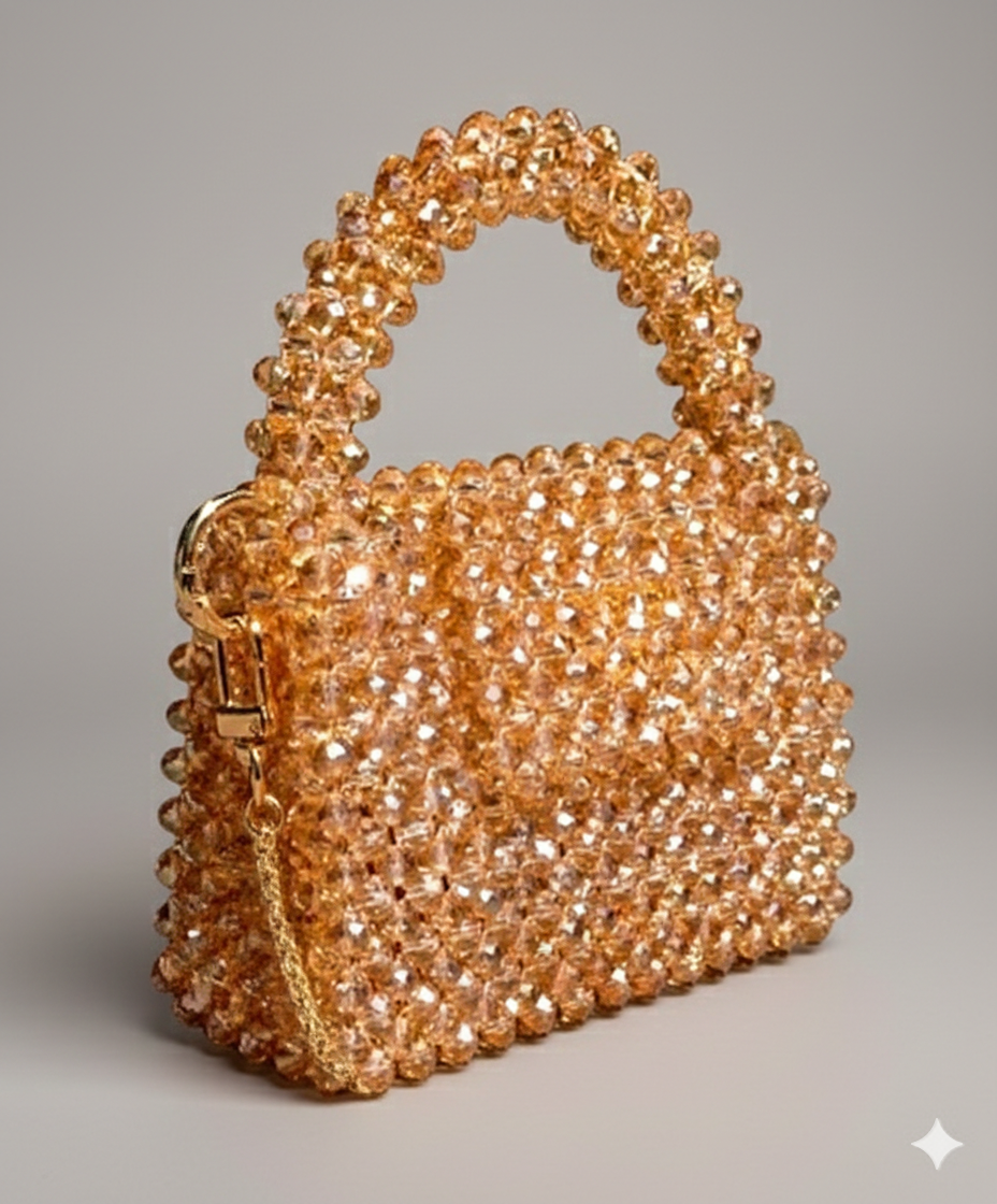 Make a bold yet graceful statement with our handmade crystal beaded purse, designed to add warmth and sparkle to your look. Crafted with orange crystal beads, finished with a premium silk lining, and paired with an elegant chain strap, this purse is perfect for those who love vibrant luxury.